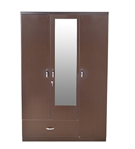 HomeTown Utsav Three-Door Wardrobe with Mirror (Wenge)